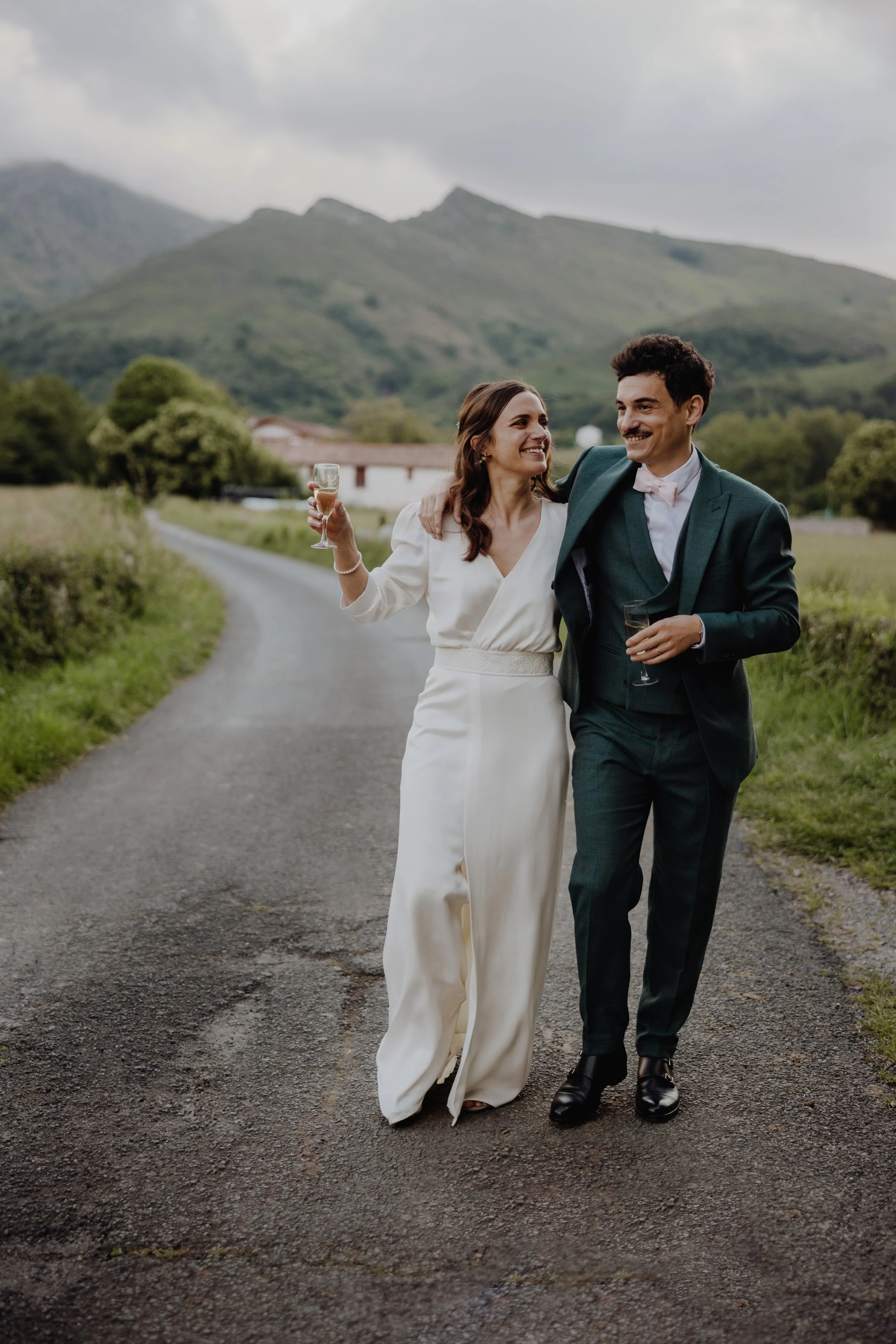 Anaïs et Guillaume ont choisi le domaine 'Au Milieu des Fougères' à Sare pour célébrer leur union, séduits par le charme authentique de cette ferme du XVIIe siècle. Nous avons eu le plaisir d'organiser leur mariage de A à Z, en prenant en charge la décoration et la coordination. Chaque détail a été pensé pour refléter leur vision, créant une atmosphère chaleureuse et conviviale. La cérémonie laïque, organisée en intérieur en raison de la saison, a été un moment magique et émouvant, suivi d'une réception ponctuée de surprises et de discours touchants. Grâce à une organisation minutieuse et une décoration soignée, la journée d'Anaïs et Guillaume a été à la hauteur de leurs rêves, laissant des souvenirs inoubliables pour eux et leurs proches