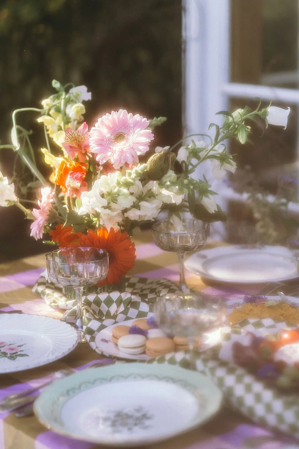 Pour ce shooting d’inspiration, intitulé 'Brunch des Familles', nous avons imaginé un univers moderne et élégant au cœur des Landes. Mon rôle a été de concevoir la direction artistique et de réaliser les créations florales, pour sublimer chaque détail et donner une identité visuelle forte à ce projet.