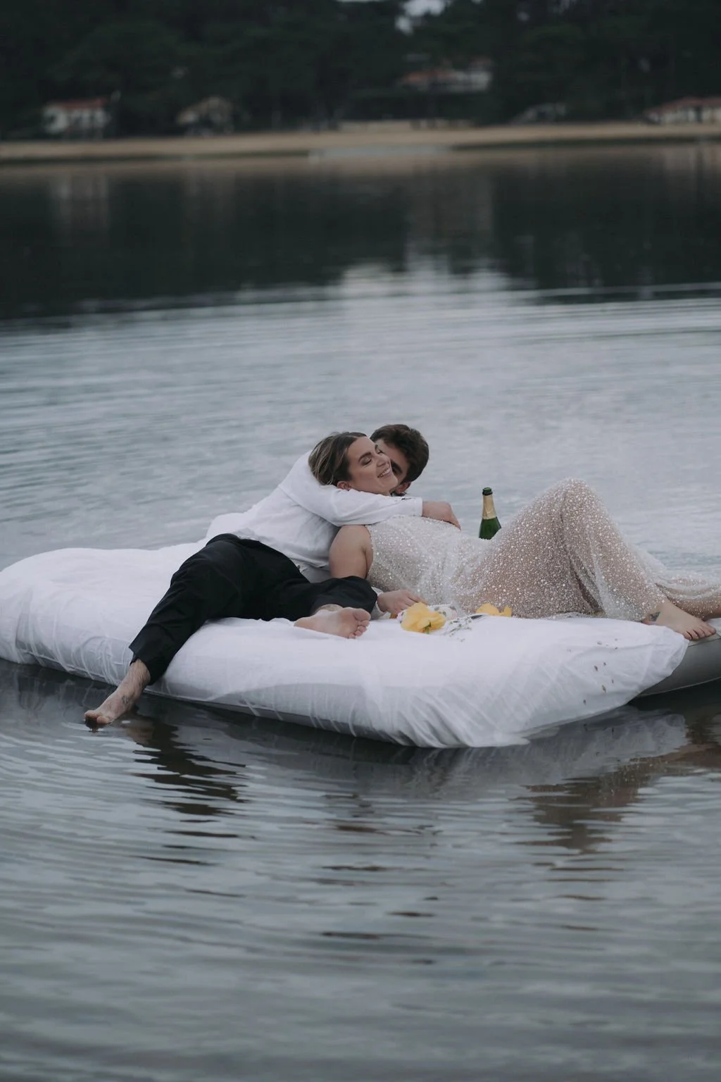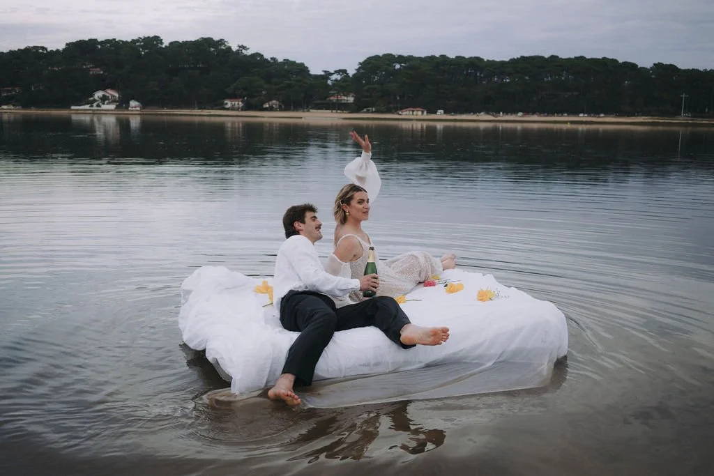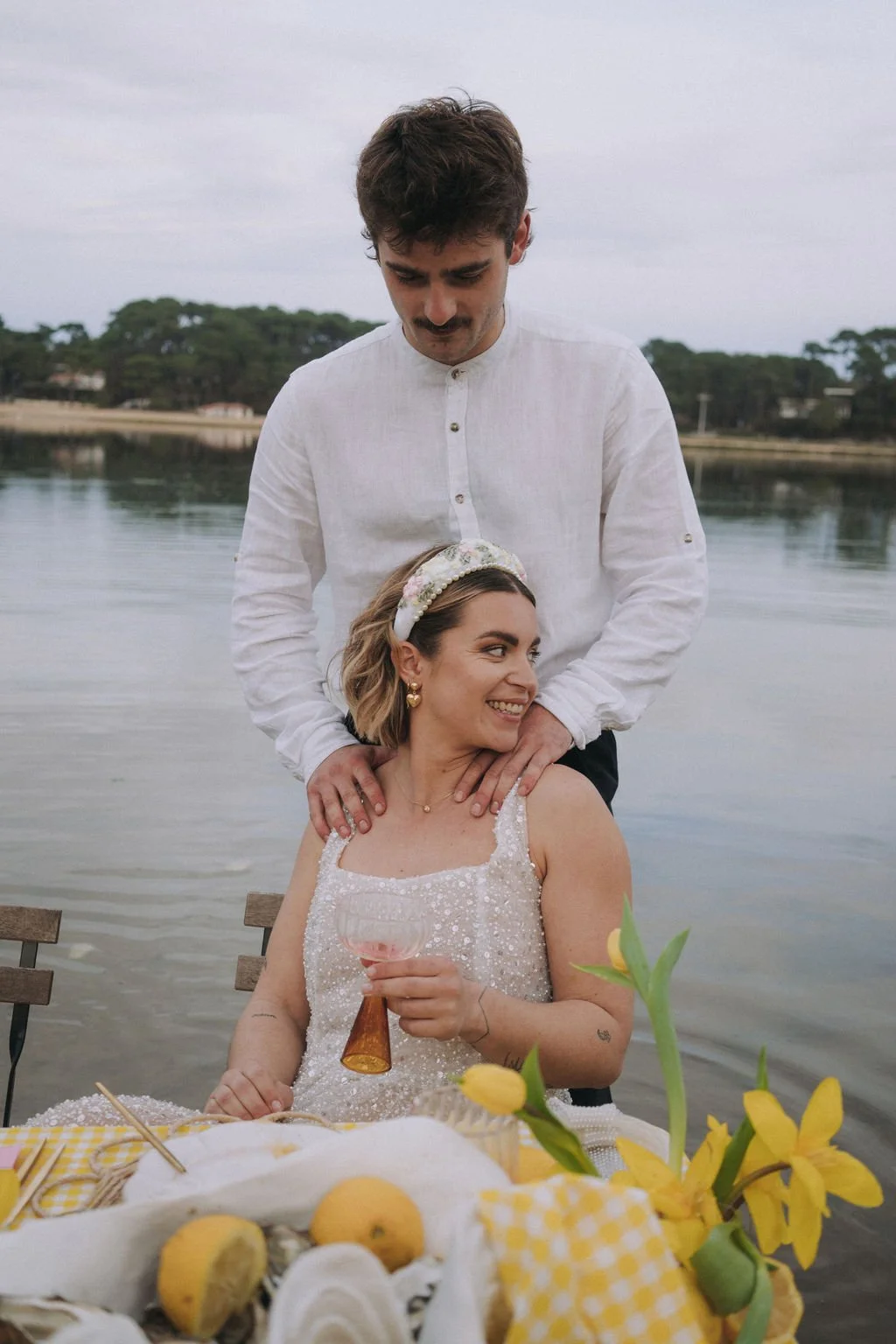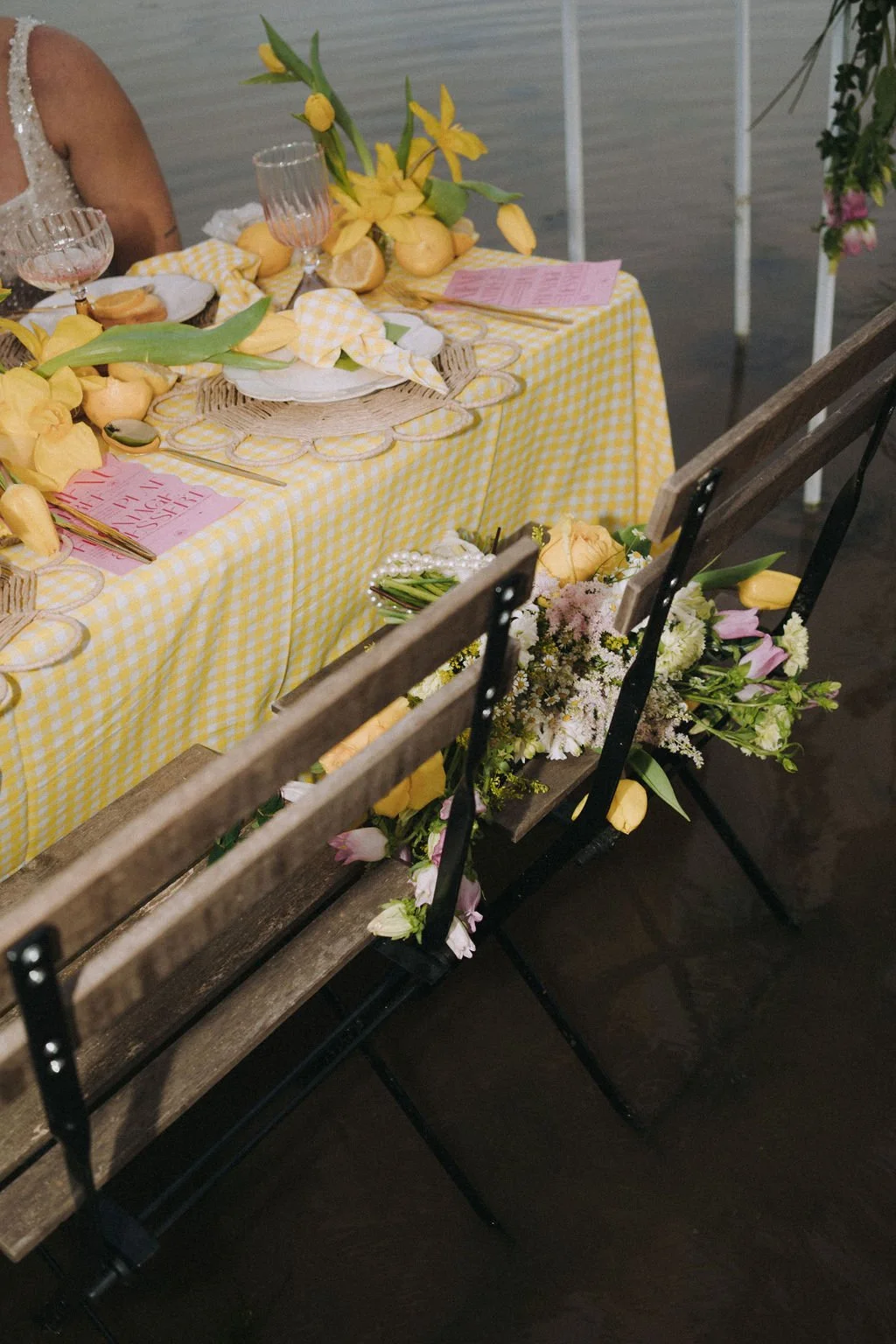 Les compositions florales et les accessoires soigneusement sélectionnés ont apporté une touche sophistiquée, renforçant le contraste entre la sérénité de l’eau et l’énergie des couleurs. Ce projet illustre parfaitement une vision moderne et rafraîchissante, idéale pour des mariages ou événements audacieux