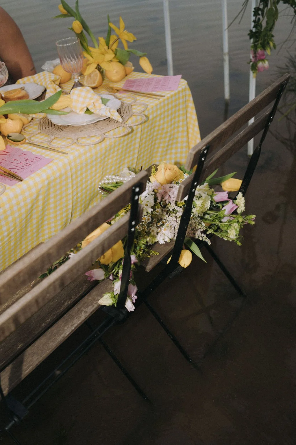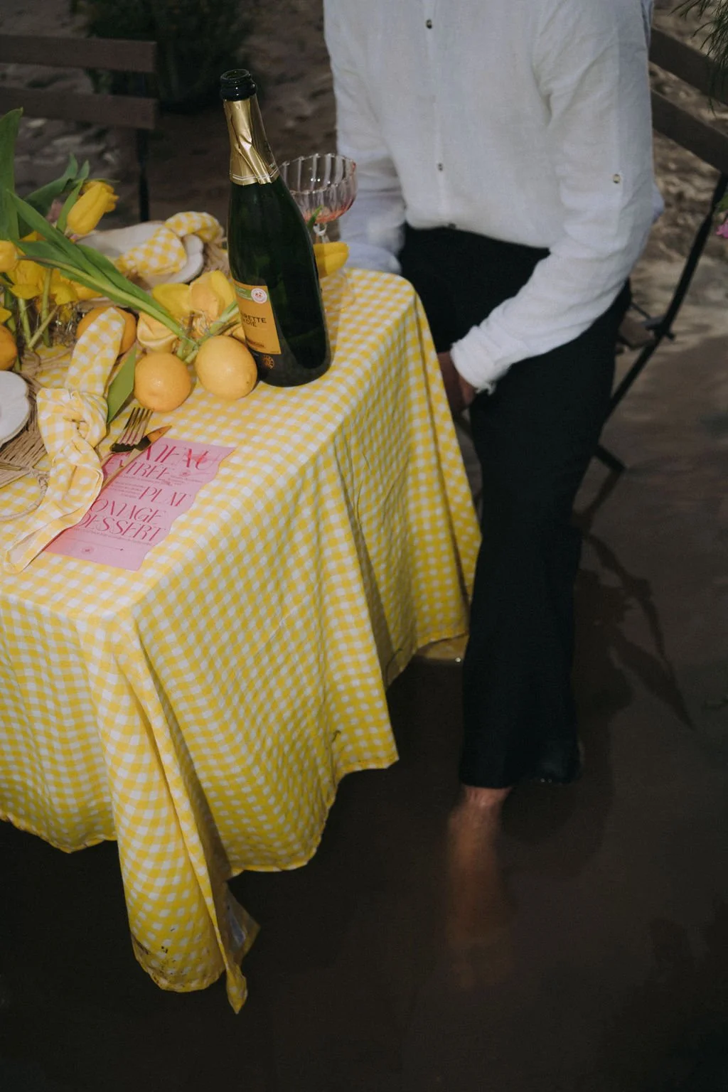 La scénographie s’est articulée autour d’une palette d’agrumes lumineuse, mêlant des teintes monochromes de jaune, rehaussées par des éléments épurés. Les détails minimalistes et les matériaux modernes ont permis de créer une ambiance vibrante, en parfaite harmonie avec le cadre naturel du lac.