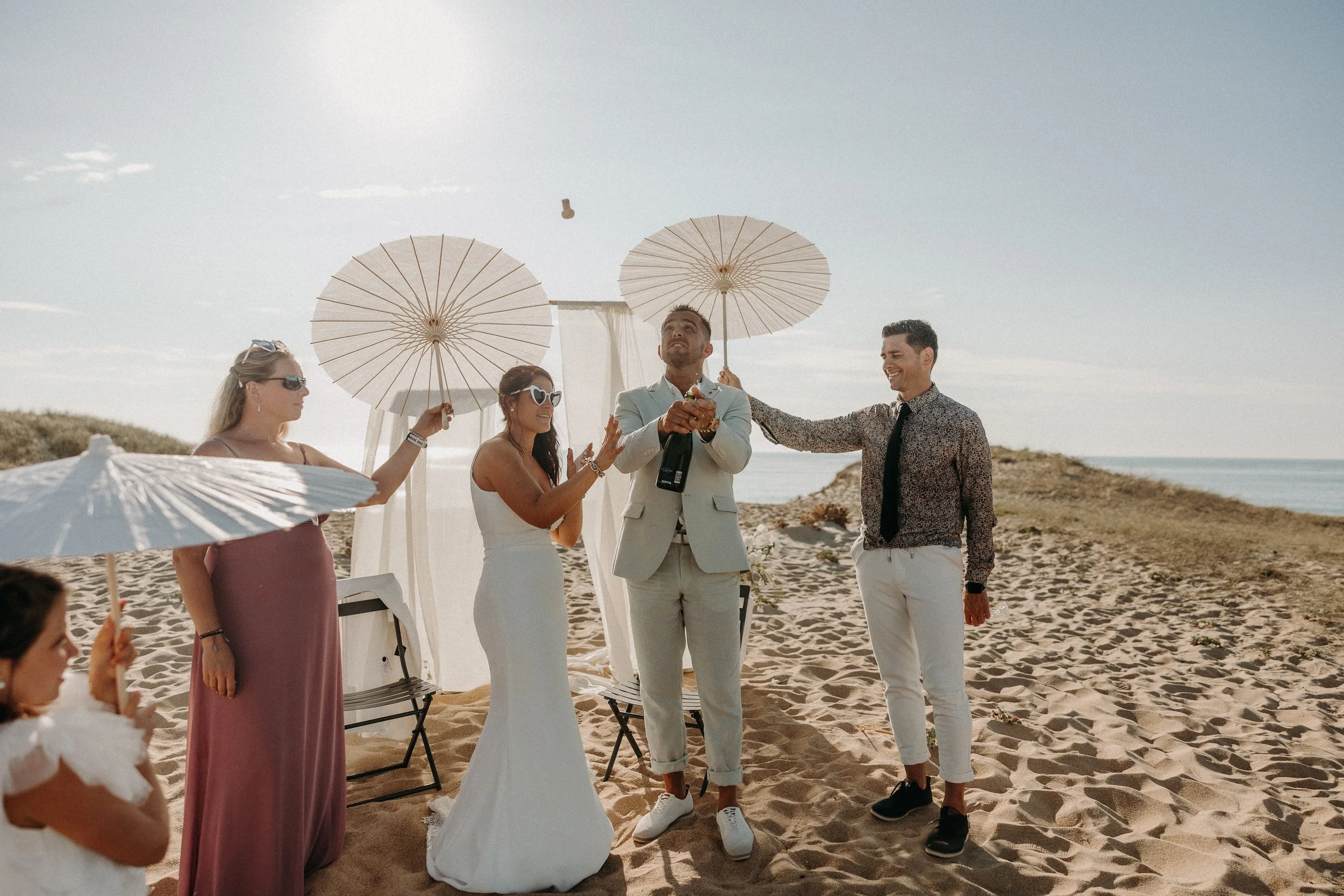 Laetitia et Jonathan ont choisi de célébrer leur amour lors d'un elopement intime dans les Landes, optant pour une cérémonie en plein air .Entourés de la nature luxuriante et de l'ambiance chaleureuse de l’océan, ils ont échangé leurs vœux dans une atmosphère empreinte de simplicité et d'authenticité. La décoration minimaliste, mettant en valeur des matériaux bruts et des tons naturels, a parfaitement complété le cadre idyllique de leur union. Ce moment privilégié, loin de l'agitation, a permis à Laetitia et Jonathan de se concentrer sur l'essentiel : leur engagement l'un envers l'autre, dans un lieu reflétant leur vision d'un amour sincère et pur.